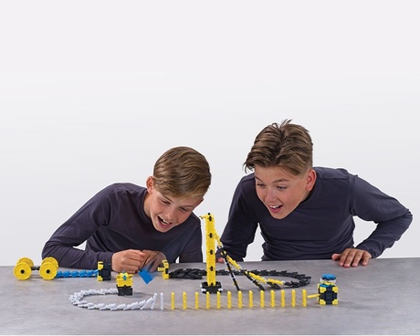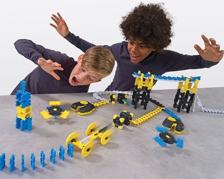 Build the ultimate domino track with ReaXion. The X shaped tiles allow you to connect them together or use the linX connectors to connect the tiles together to create even larger constructions. Add in the additional stunts for maximum effect. Now time for the destruction! Watch your ReaXion structure collapse in the most awesome way.